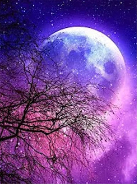 Majestic Moon over Purple Themed Forest Paint By Numbers Kit Description: Now you can paint...