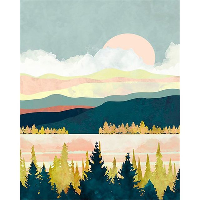 Misty Mountain Landscape Pastel Themed Paint By Numbers Kit Description: Now you can paint your...