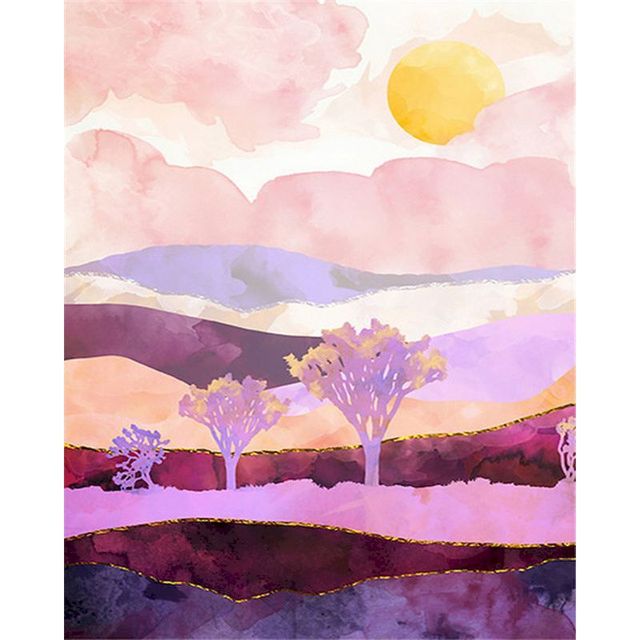 Mountain Landscape Purple Watercolor Themed Paint By Numbers Kit Description: Now you can paint your...