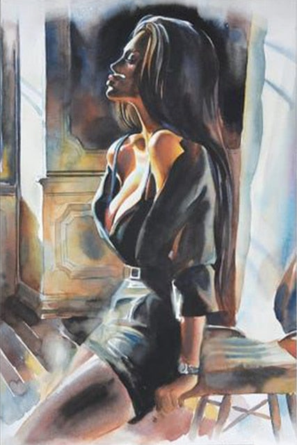 Mysterious Lady in Black Dress Impressionist Themed Paint By Numbers Kit Description: Now you can...