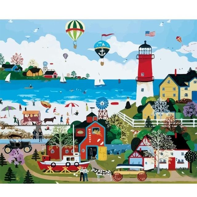 Balloons Over Maine Lighthouse in Watercolor Paint By Numbers Kit Description: Now you can paint...