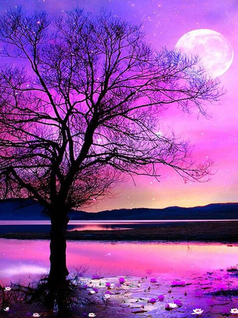 Calm Purple Themed Moonlit River Paint By Numbers Kit Description: Now you can paint your...