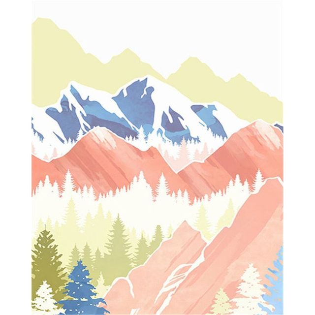 Mountain Landscape with Vibrant Pastel Theme Paint By Numbers Kit