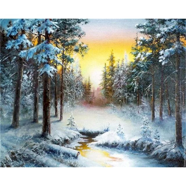 Sunset at the Frozen Forest Paint By Numbers Kit