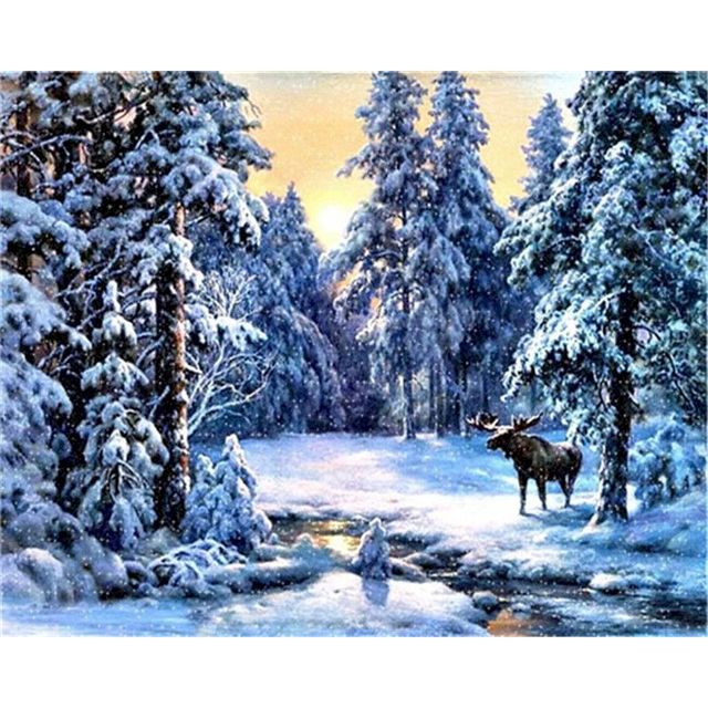 Moose 'Lost in the Snowy Woodland' Paint By Numbers Kit
