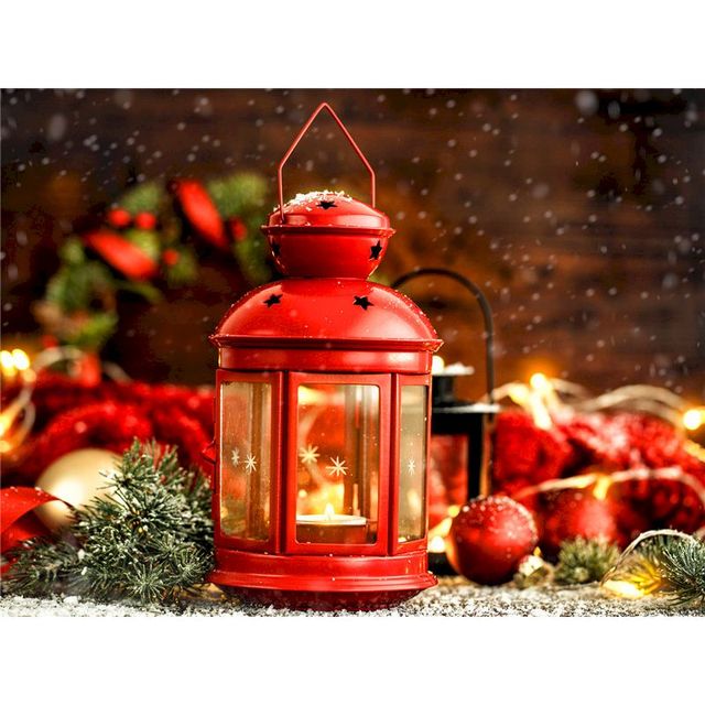 Christmas Red Lantern and Snow Balls Paint By Numbers Kit Description: