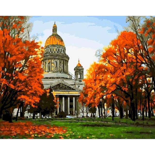 Russia 'Saint Isaac's Cathedral | Autumn Trees' Paint By Numbers Kit Description: