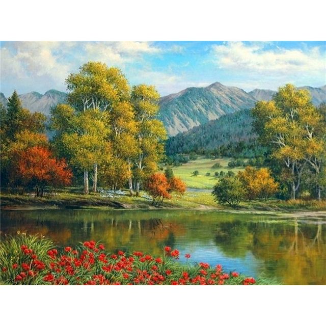 Now you can paint your favorite image with our amazing Trees and Mountain 'Flowers on the Riverside' Paint By Numbers Kit! The joy of painting this Trees and Mountain 'Flowers on the Riverside' Paint By Numbers Kit will only be matched by the beautiful painting you will create. Whether you are a skilled artist or a complete amateur, with our Trees and Mountain 'Flowers on the Riverside' Paint By Numbers Kit, you can turn every image into a masterpiece.